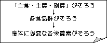 また、御自分で調理をしない場合は、料理にどんな食品が使われているかわかりにくいですよね。そういう場合は、「主食・主菜・副菜」が食卓にそろっているかどうかでも、バランスの良い食事かどうか、ある程度判断することができます。