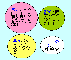 また、御自分で調理をしない場合は、料理にどんな食品が使われているかわかりにくいですよね。そういう場合は、「主食・主菜・副菜」が食卓にそろっているかどうかでも、バランスの良い食事かどうか、ある程度判断することができます。