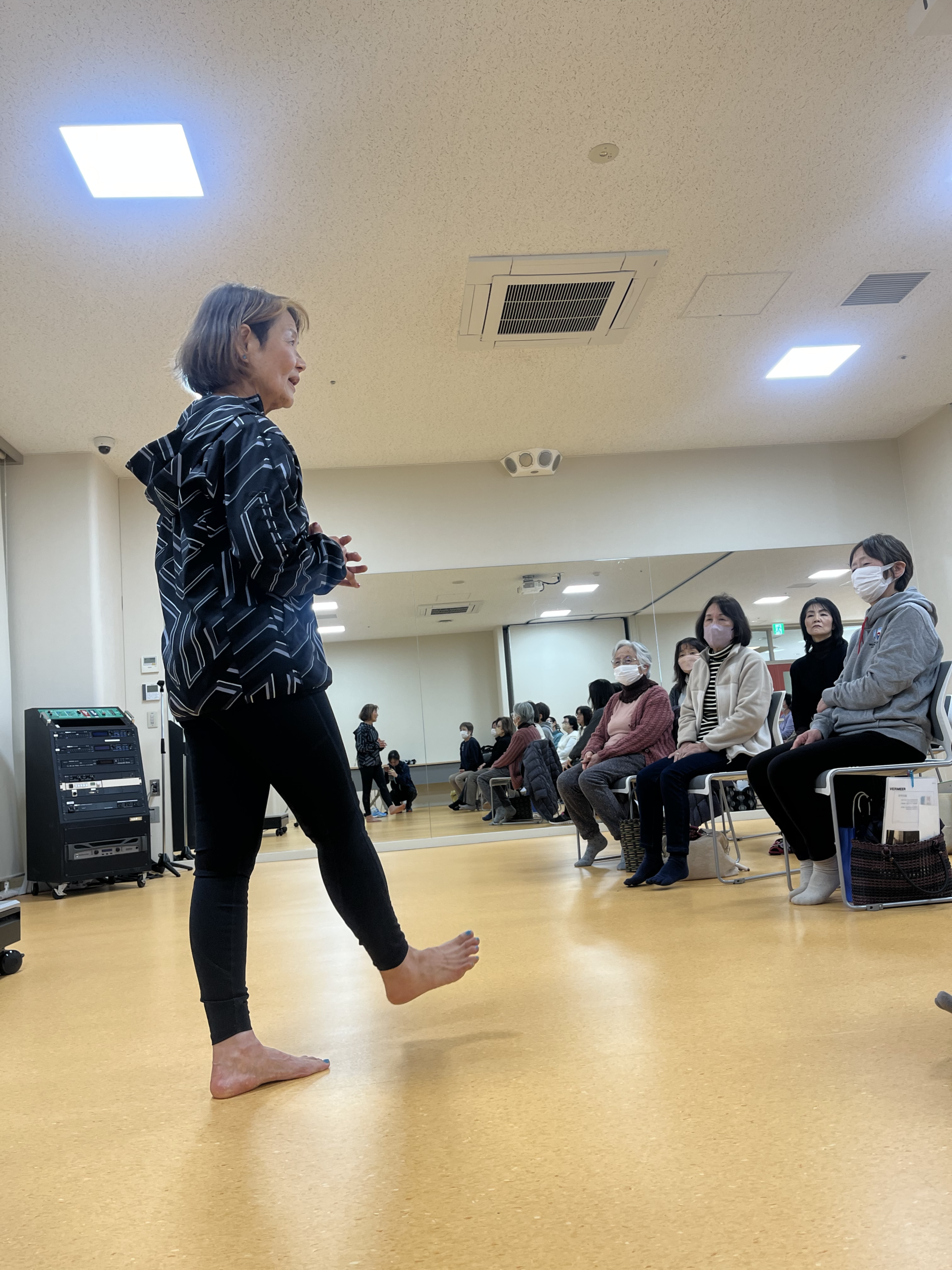 この講座では、関節は機能的に使うと壊れにくいことから、筋バランスを整え美しい姿勢で立つことの大切さを、実際の動きを通して体験していただきました。