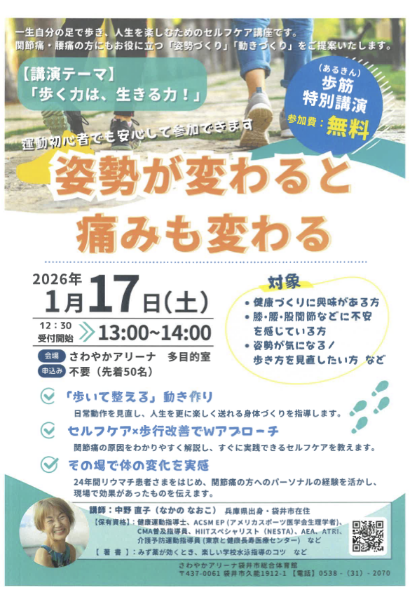2026年の年明け、1月17日に袋井市さわやかアリーナにて歩筋(あるきん)特別講座が開催されました。