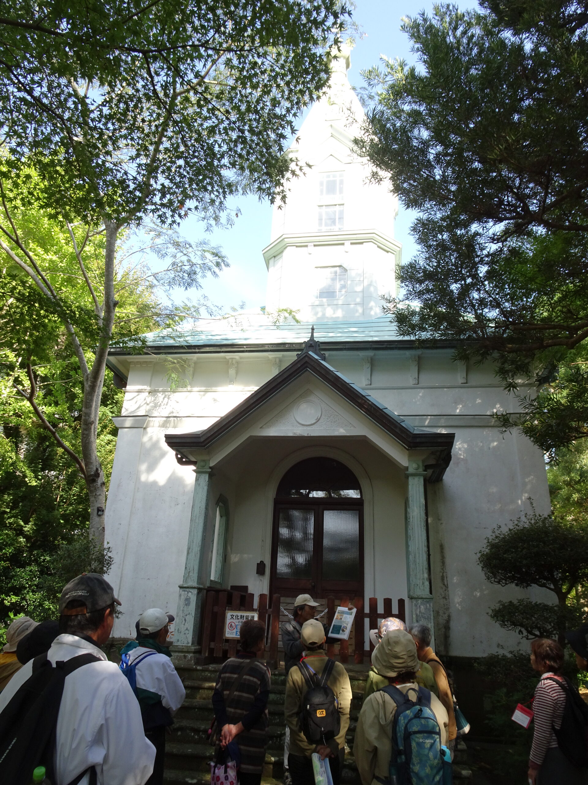 桂川を渡りキツイ坂道を、桂谷八十八か所巡りの霊場や紅葉した桜の木に絡まるアケビなどを見ながら、ハリストス正教会へ。「なぜ修善寺に、ロシア正教会が??」の答えや当時の地元旅館での逸話など、ガイドさんが楽しくお話くださいました。教会の信者さんは少人数となりましたが、今も月に一度は神父さんとお祈りが捧げられており、11月には一般公開もされるとのことでした。