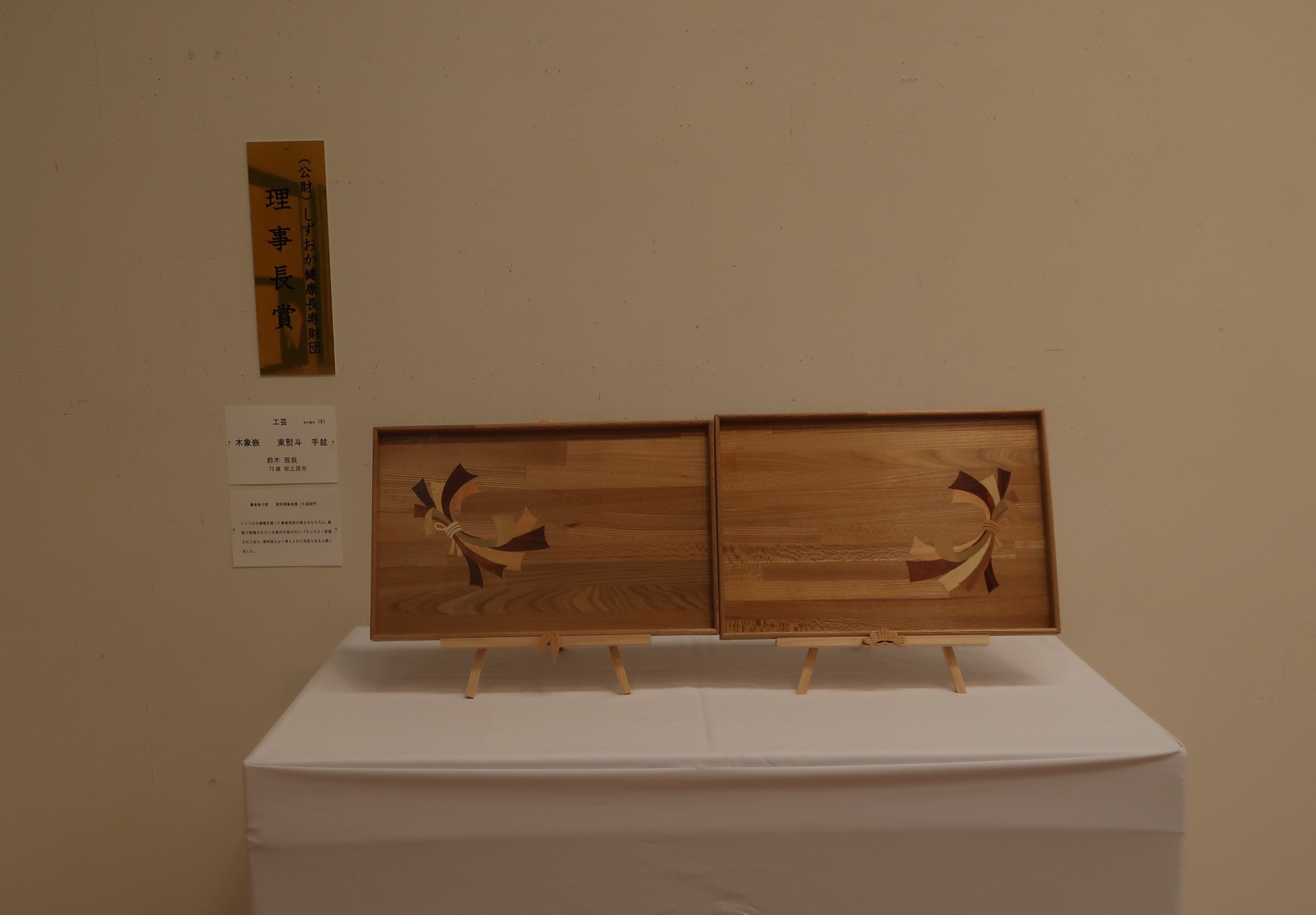 作品題名「木象嵌 束熨斗 手盆」 作者 鈴木辰哉(牧之原市 73歳)