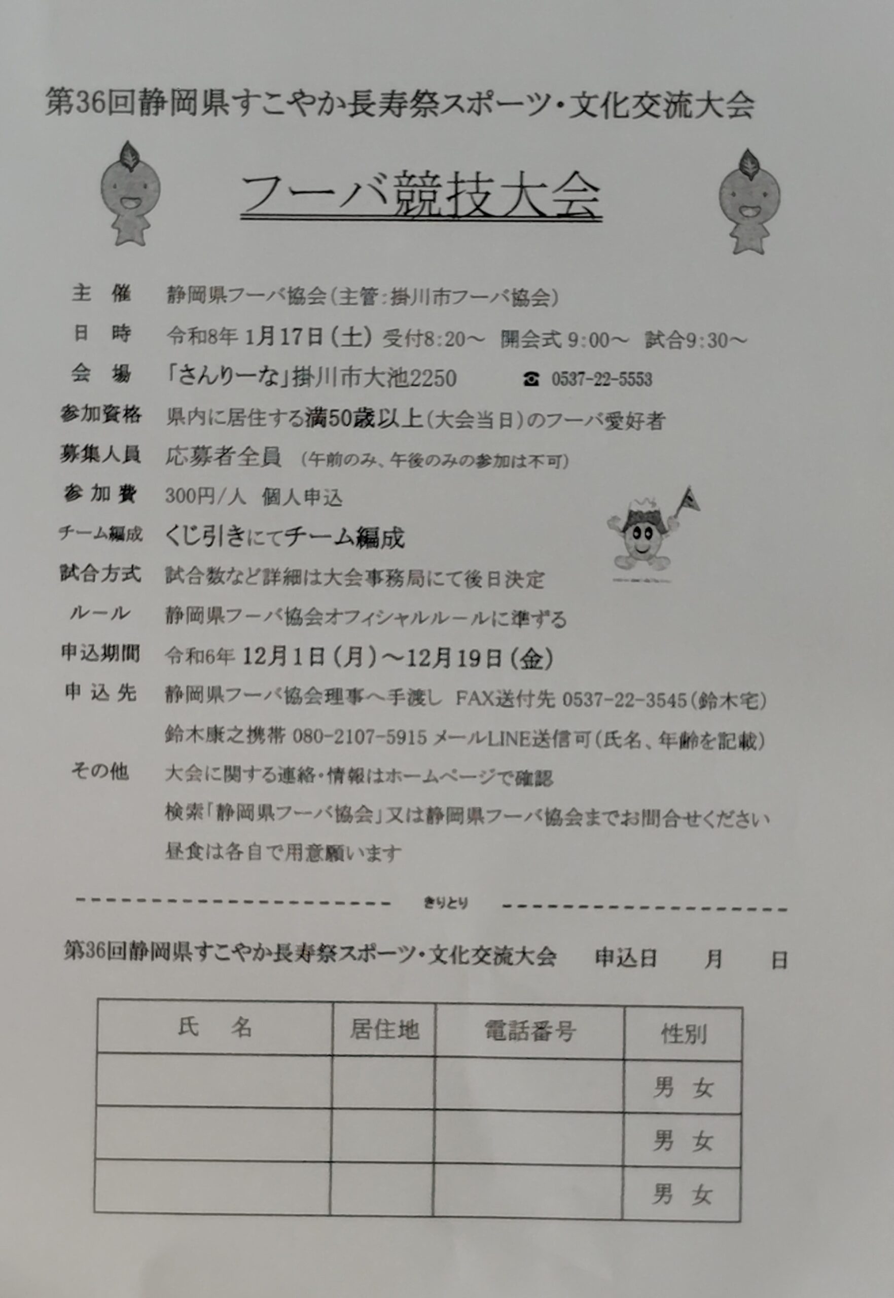 2025年(令和7年)11月22日(いい夫婦の日)午前9時から、東遠カルチャーパーク総合体育館「さんりーな」で第17回静岡県フーバ大会が開催されました。