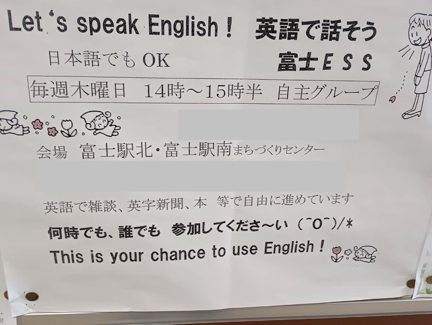 2026年3月12日(木)14:00~ 富士市駅北町づくりセンターで活動しているグループを訪問してきました。 会員は、入れ替わりがありながらも、毎回10人程度が参加しています。驚いたのは、専門講師がいないことです。初心者から、海外に居住経験のある人まで、さまざまなレベルの人が、和気あいあいとした雰囲気の中で、歓談しています。