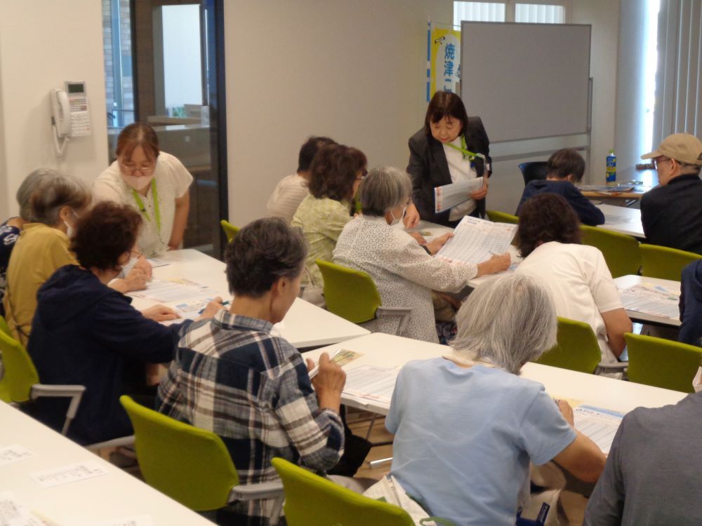 内 容 | 健康寿命日本一の静岡県ですが、要支援・要介護の3大原因・認知症・脳血管疾患・骨折・転倒に注意が必要です これらは、「栄養不足やバランスの乱れ」が原因のひとつと考えられます。70歳ころからは「低栄養」に注意が必要です。 各自の筋肉量のチェックや理想体重を確認し、クイズを交えながら具体的な栄養摂取についてわかりやすくお話しました。 |